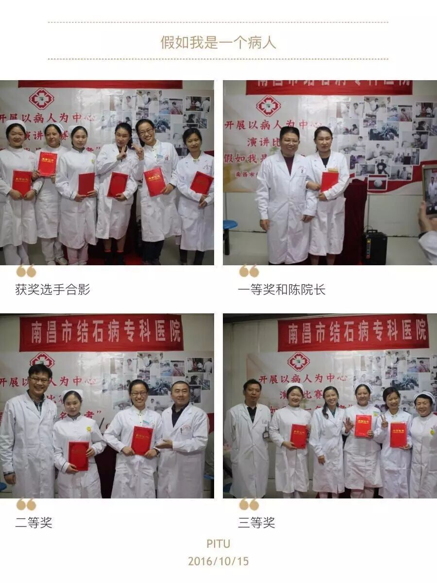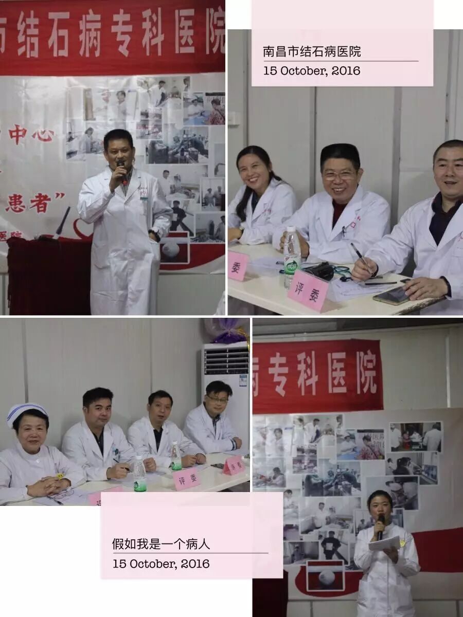 “假如我是一个病人,我渴望走进宽敞明亮的医院大厅,整洁舒适的环境能驱散我心中对疾病的恐惧……”,“假如我是病人,我希望看到的是医务工作者炽热的眼神和那张被蒙在白色口罩后面真诚的笑脸,希望看到一支技术精湛的医疗队伍,诊疗费用能尽量合理,疾病能尽快痊愈……”。10月15日傍晚,一场以“假如我是一个病人”为主题的演讲比赛在南昌市结石病专科医院举行,从各科室挑选出24位选手参加此次比赛。